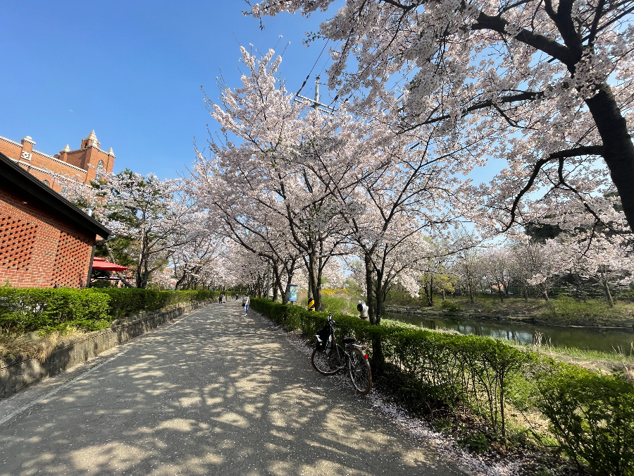 지금 만개했으니 주말 동안 예쁜 벚꽃과 벚꽃비도 만날 수 있을 것 같다.