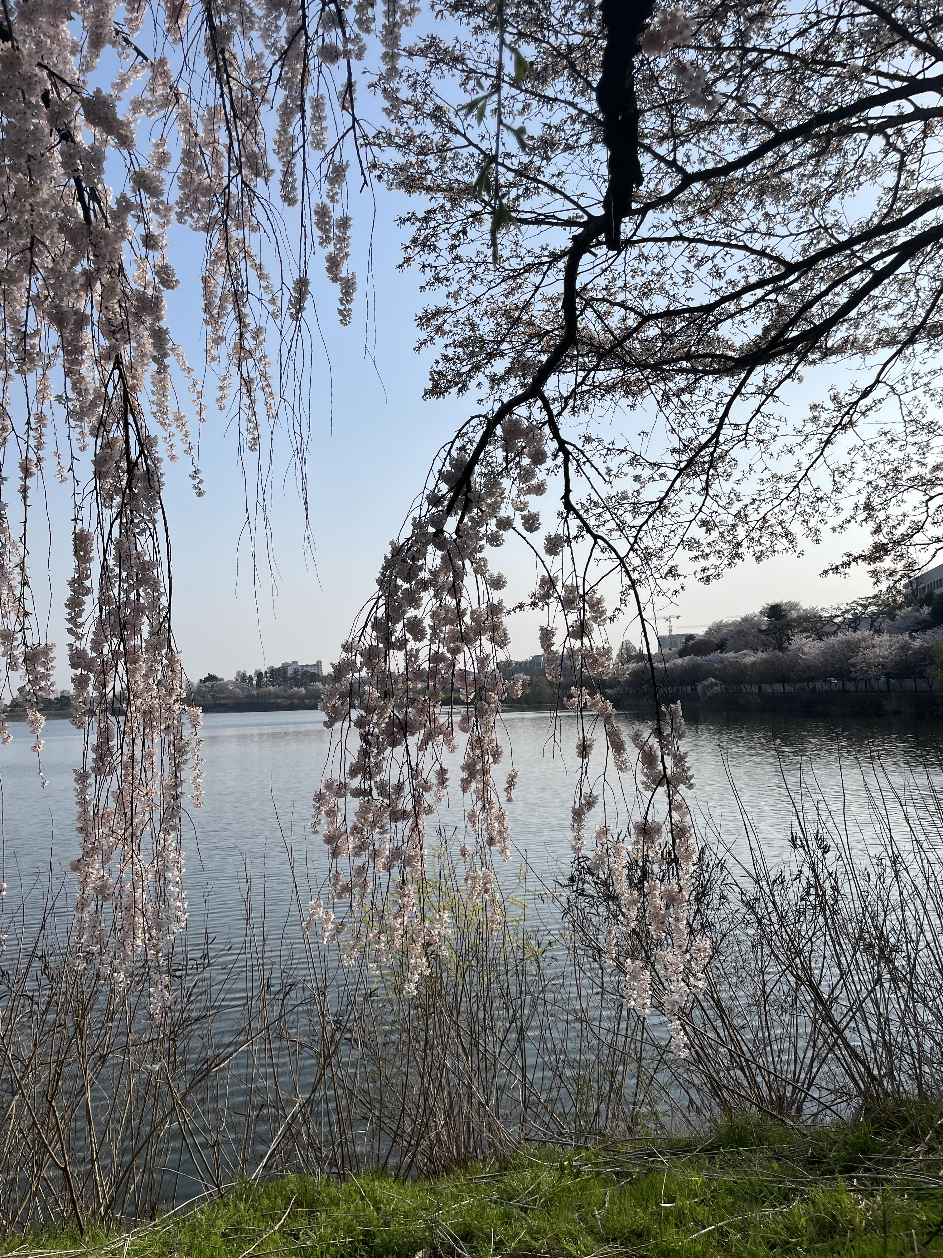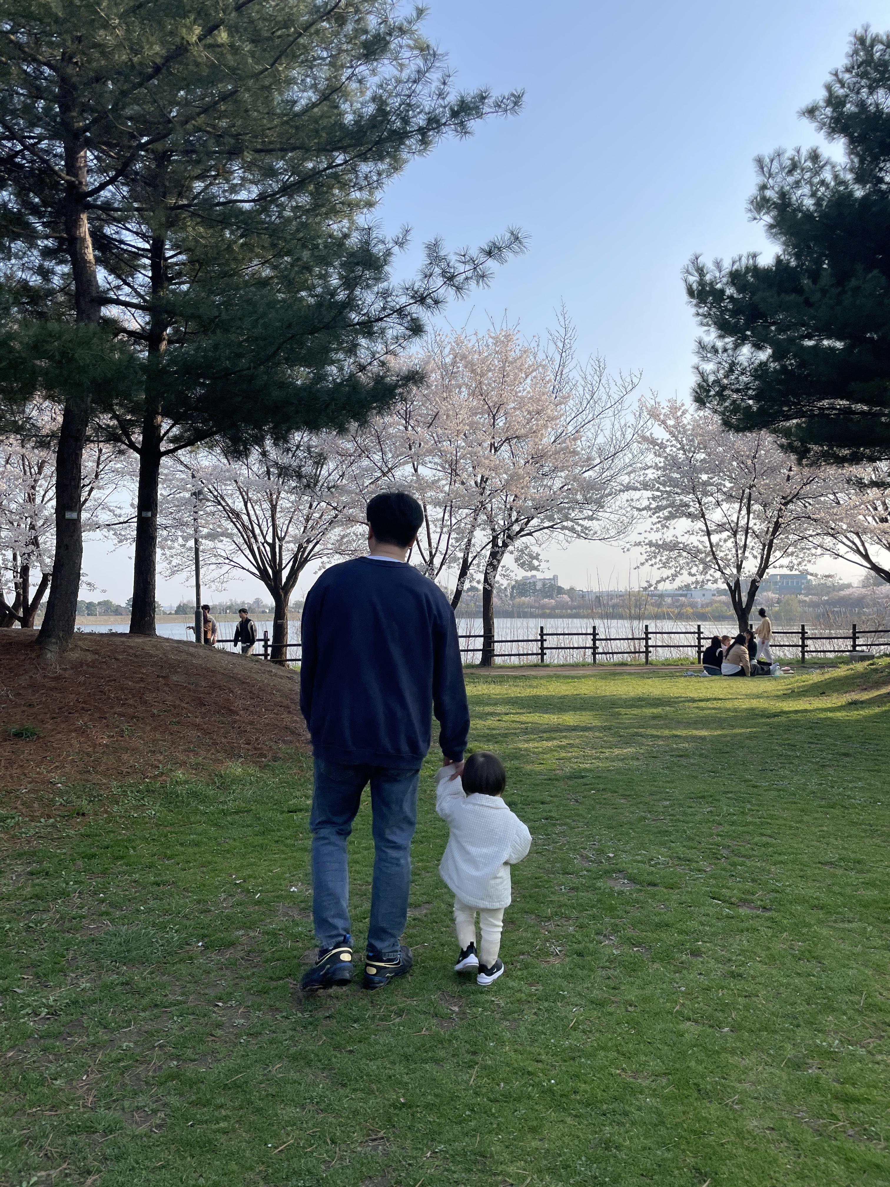 서호 공원 안에 피크닉을 할 수 있는 잔디밭 쪽 벚꽃 폭포도 예쁘게 만개했다. 오늘 여기서 가족사진 인생샷을 건졌다.