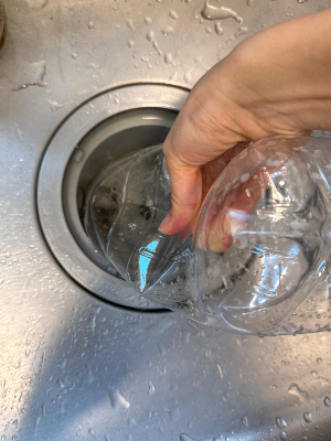 1. 물이 차올라있을 때 바닥 배수관에 빈 페트병을 갖다 댄다.